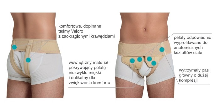 Idealny przy wspomaganiu procesu leczenia i rehabilitacji niewielkich przepuklin pachwinowych oraz profilaktycznie przeciw nawrotom w przypadku słabego aparatu mięśniowo – więzadłowego prawostronnego lub lewostronnego.