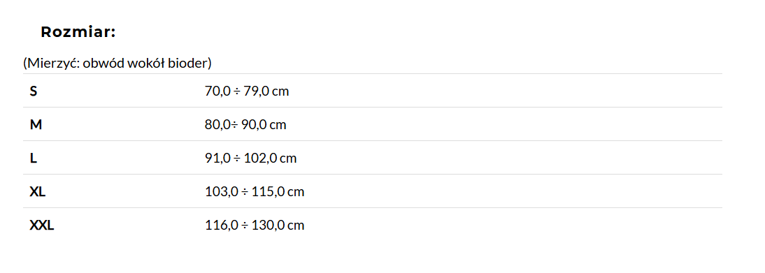 Dla kobiet i mężczyzn. Rozmiar dobieramy wg obwodu bioder