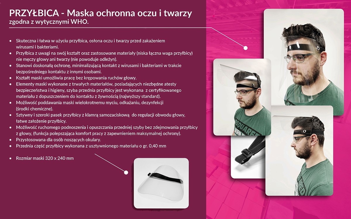 Przyłbica ochronna zgodna z wytycznymi WHO