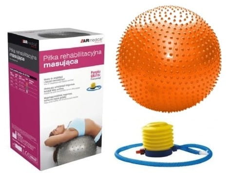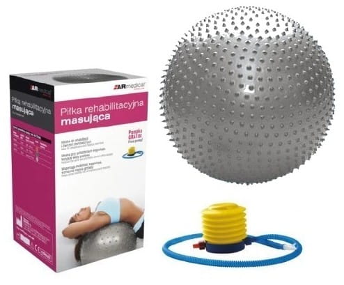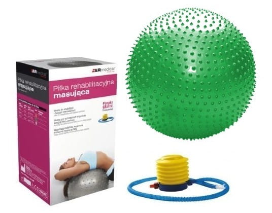 Piłka rehabilitacyjna masująca przeznaczona jest do korygowania wad postawy, w terapii mającej na celu poprawę kondycji i koordynacji ruchowej, wzmocnienia mięśni grzbietu, zwiększenia ruchomości stawów oraz w schorzeniach neurologicznych. Doskonała dla osób chcących zachować sprawność fizyczną dzięki treningowi ogólnorozwojowemu. Dzięki miękkim, masującym wypustkom na całej powierzchni stymuluje strefy reflektoryczne (receptory) na skórze działając pobudzająco.